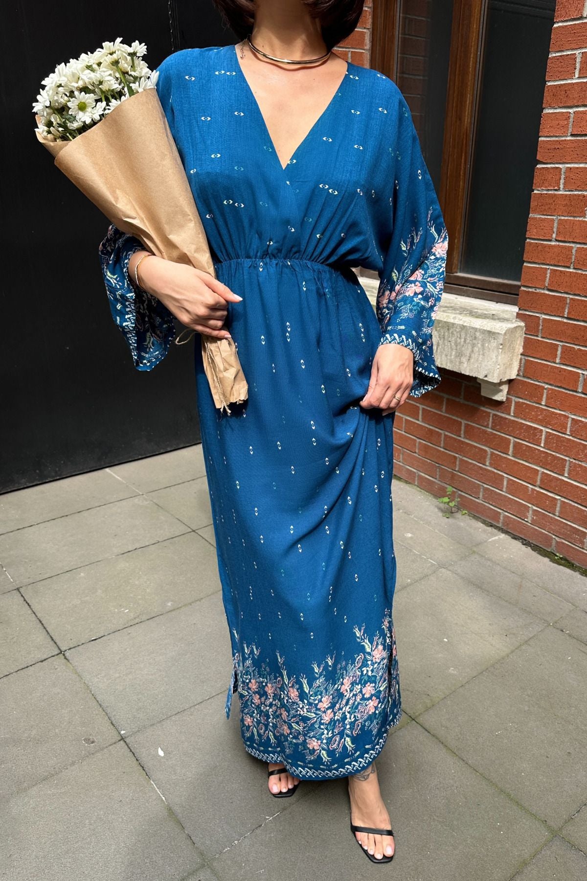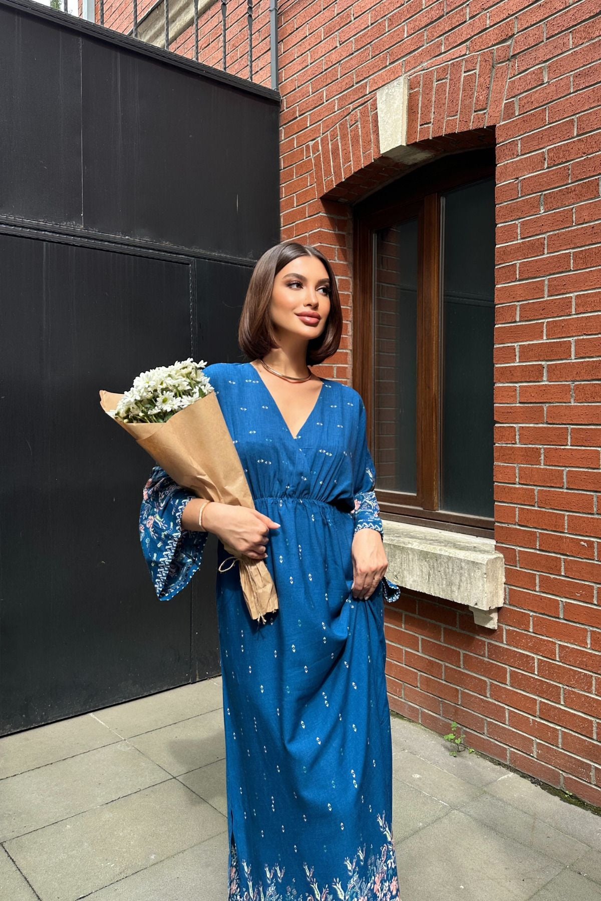 - Yaz aylarının vazgeçilmezi, hafif ve nefes alabilen viskon kumaştan üretilmiştir.; - Anvelop kesimi ile modern ve şık bir görünüm sunar.; - Desenli tasarımıyla göz alıcı bir stil oluştururken, beyaz rengin ferahlığını da ön plana çıkarır.; - Modest koleksiyonuna ait bu elbise, günlük kullanım için idealdir.; - Cepsiz yapısı sayesinde minimalist bir tarza sahiptir; pratikliğiyle dikkat çeker.; - Düz dokuma tipi, kaliteli hissiyatını artırırken kolay bakım imkanı sağlar.; - Astarsız oluşuyla hafiflik kazandırarak yaz günlerinde konforlu bir deneyim sunar.; - TYP1 yıkama talimatına uygun şekilde temizlenmesi önerilir; böylece uzun süre ilk günkü gibi kalmasını sağlayabilirsiniz.; - Young persona'ya hitap eden dinamik ve genç ruhunu yansıtan tasarım detaylarına sahiptir.; - Anvelop silueti sayesinde hem rahat hareket etme özgürlüğü sunar hem de zarif duruş sergiler.; - Sürdürülebilirlik detayının bulunmaması ise çevreye duyarlı tüketiciler için alternatif bir seçenek olarak değerlendirilebilir.; - Kapasız olmasıyla basit ama etkili bir kullanım vaad ederken, kemersiz yapısıyla minimalizmi benimseyenlere hitap eder.; - Lastikli bel detayı sayesinde vücuda mükemmel oturuş sağlar ve konforlu bir kullanım sunar.; - Dokuma kumaşı dayanıklılığı arttırarak ürünün ömrünü uzatır.; - TR menşeli olması yerel üretim tercihini destekleyerek ülke ekonomisine katkıda bulunur.; - Uzun boyu ile bacakları olduğundan daha uzun gösterirken, anvelop kalıbıyla feminen hatları ön plana çıkartır.; - Yetişkin yaş grubuna yönelik tasarlanmıştır; her yaştan kadının gardrobunda yer bulabilir.; - Uzun kol boyu mevsimsel geçişlerde bile serin tutarken şık görünümünden ödün vermez.; - Dokuma materyali sayesinde formunu koruyarak sık kullanımda bile estetik görünümünü muhafaza eder.; - Trend ortamlarda dahi stil sahibi olmanız için idealdir; etnik deseniyle farklılık katmak isteyenler için uygundur.; -Kruvaze yakası ile sofistike bir dokunuş eklerken aynı zamanda rahatlık sunar.