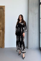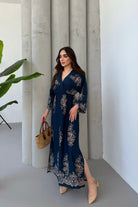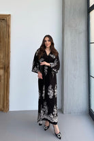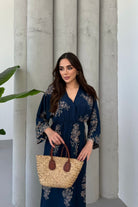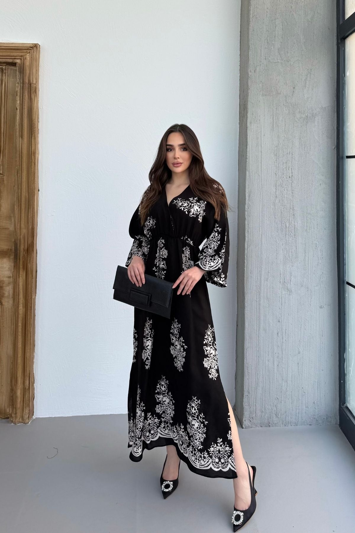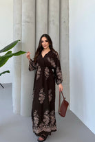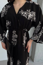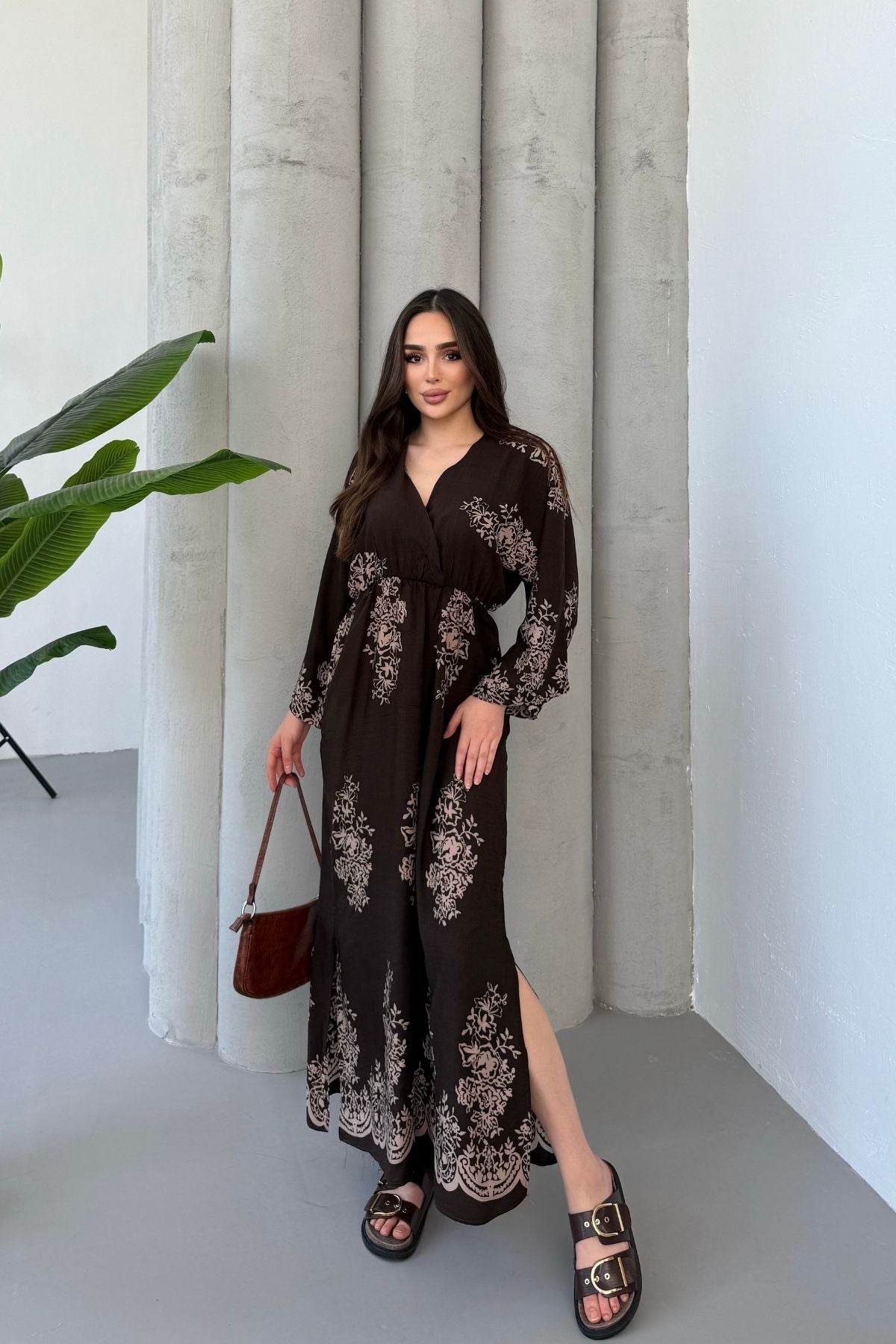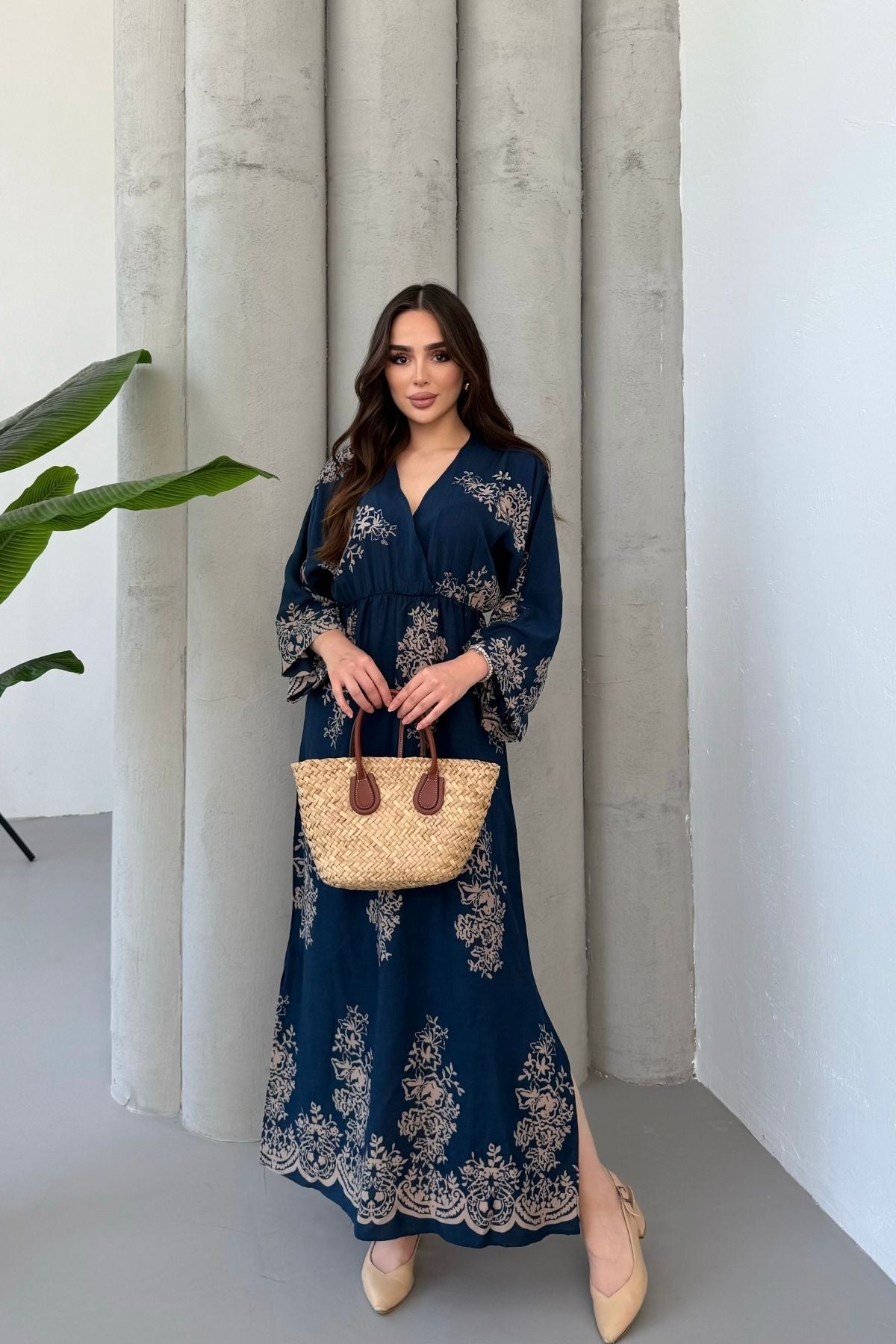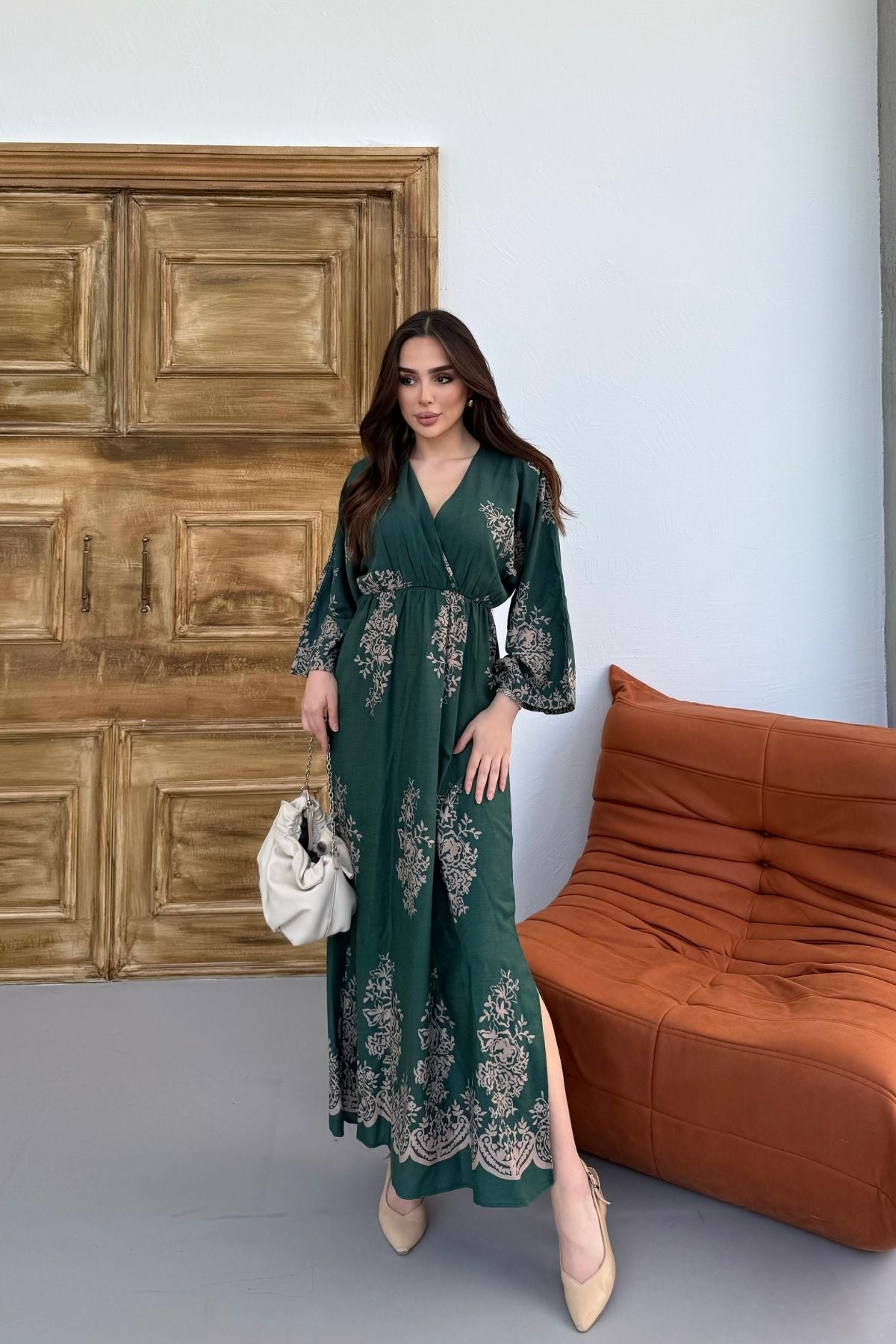 Uzun Kollu Kruvaze Yaka Desenli Kadın Elbise